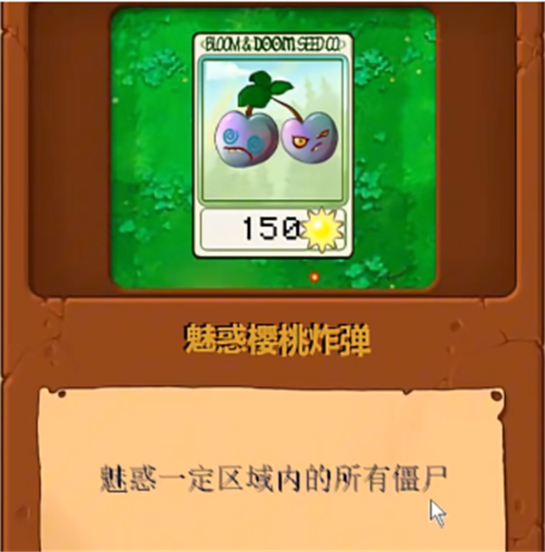 3、魅惑櫻桃炸彈:將可以用自己的實力來魅惑一定區(qū)域內(nèi)的僵尸們,使得僵尸原來返回;