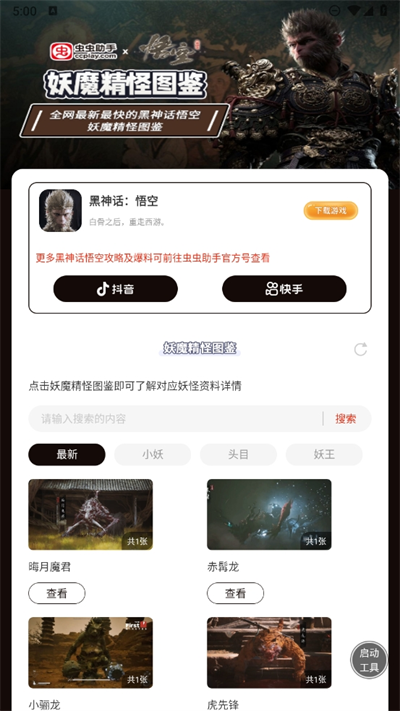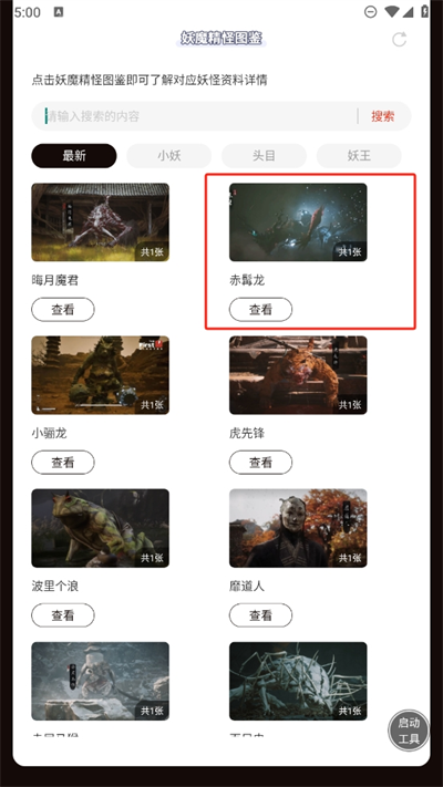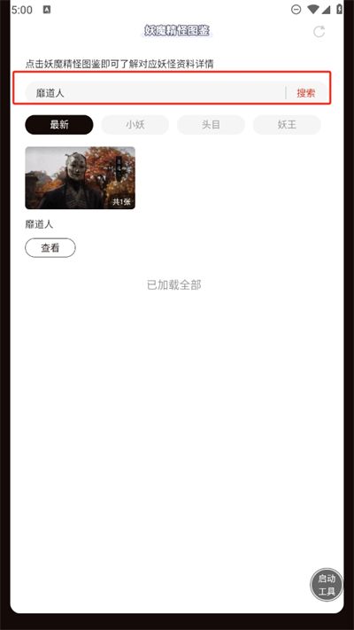 利用該的搜索功能能快速搜索到妖怪,及時(shí)的查看妖怪的介紹;