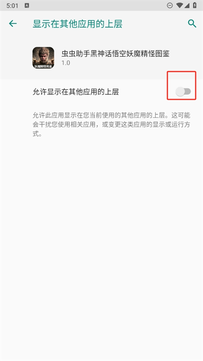5、允許顯示在其他應(yīng)用的上層這個(gè)權(quán)限一定要開(kāi)啟,否則會(huì)開(kāi)啟懸浮窗口失敗。