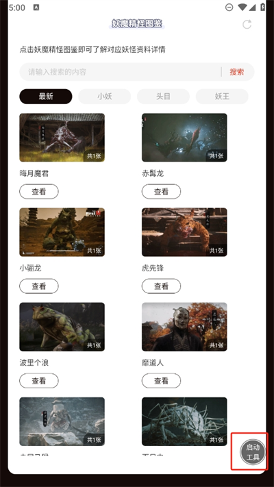 利用該的搜索功能能快速搜索到妖怪,及時的查看妖怪的介紹;