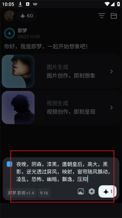 2、在圖片生成界面的輸入框中,輸入想要生成的畫面描述。