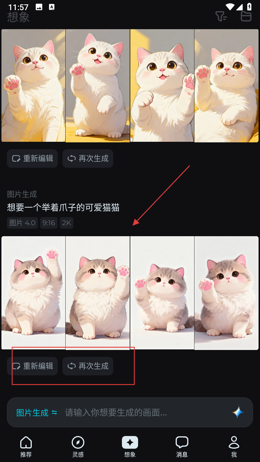 4、生成完成后,可查看AI生成的圖片,若不滿意還能點擊重新編輯或再次生成調(diào)整。