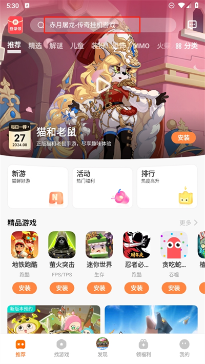 1、進(jìn)入軟件后可以通過上方搜索欄目中搜索游戲,輕松找尋本站中的各種游戲資源;