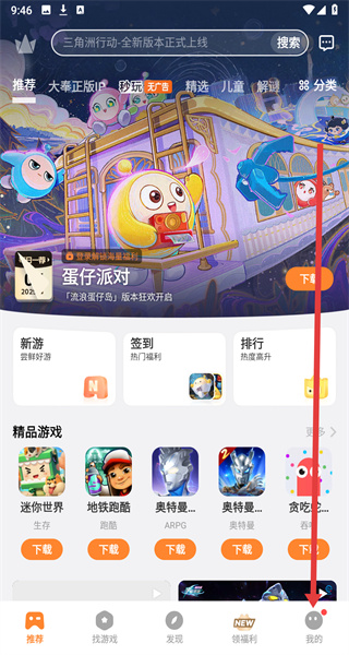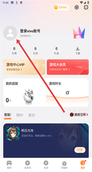 1、在vivo游戲中心首頁中,可以通過點(diǎn)擊我的按鈕,進(jìn)入個(gè)人中心頁面。
