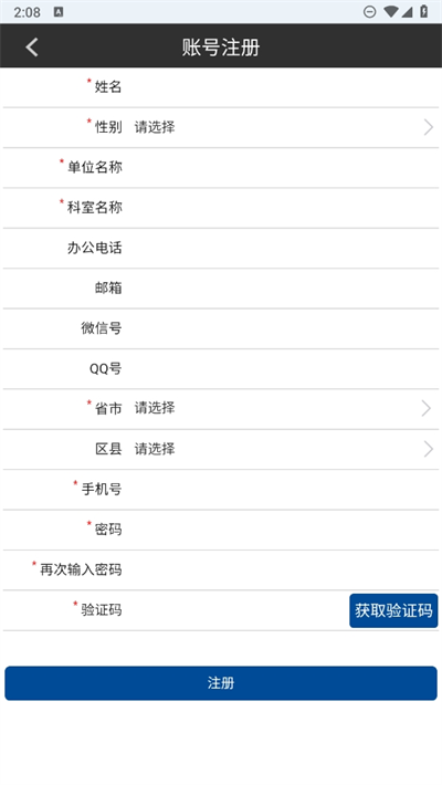 2、在進(jìn)行賬號(hào)的注冊(cè)時(shí)要注意填寫自己的真實(shí)單位名稱和科室,通過手機(jī)驗(yàn)證碼驗(yàn)證后即可注冊(cè);