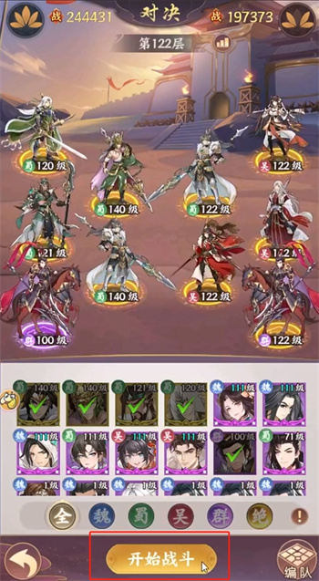 2、在這里選擇自己的古代作戰(zhàn)英雄,組建一支自己的戰(zhàn)斗隊(duì)伍,然后點(diǎn)擊下面的【開始戰(zhàn)斗】投入到這里的激烈戰(zhàn)斗中;