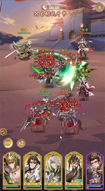 3、看著屏幕之上自己組配出來的英雄隊(duì)伍與敵人進(jìn)行戰(zhàn)斗,感受放置戰(zhàn)斗中的獨(dú)有精彩戰(zhàn)斗快感,看著自己策略被發(fā)揮出來的戰(zhàn)斗場景;