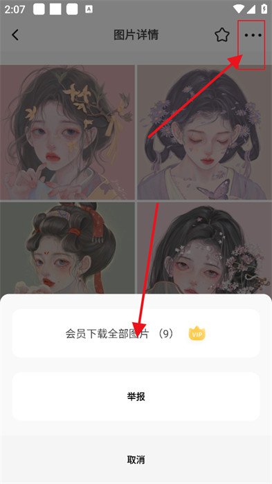 3、接著,點(diǎn)擊圖片之后,還能找到右上角的按鈕批量緩存喜歡的資源,十分的便利;