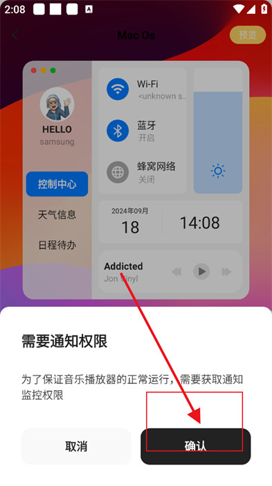 5、在設(shè)置小組件的時候需要獲取到設(shè)備的權(quán)限,如下圖點(diǎn)擊【確認(rèn)】;