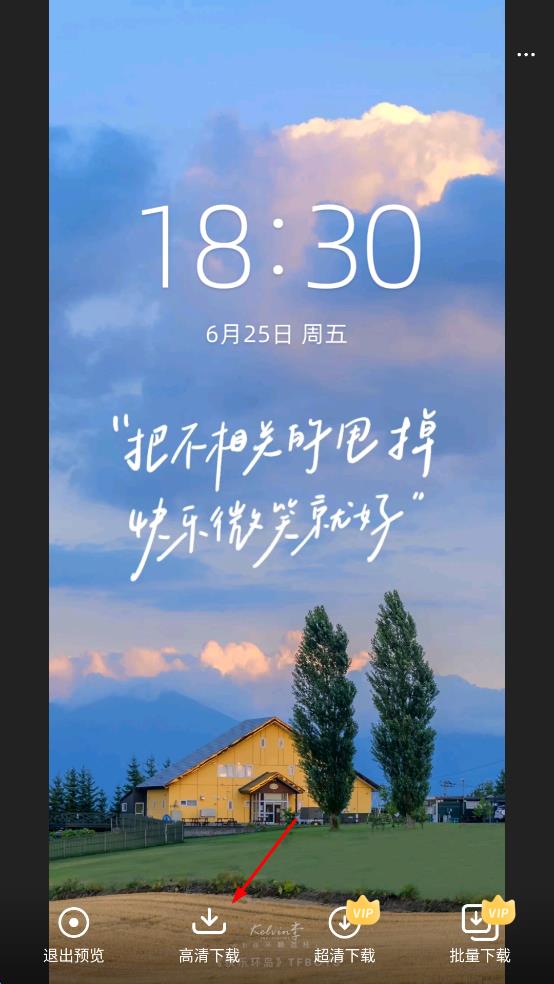 3、在圖片詳情頁面中,點(diǎn)擊該壁紙進(jìn)入預(yù)覽模式,接著在預(yù)覽頁面下方找到“高清下載”按鈕,點(diǎn)擊“高清下載”按鈕,等待下載完成,這樣就成功將這張文字壁紙下載到設(shè)備中了。