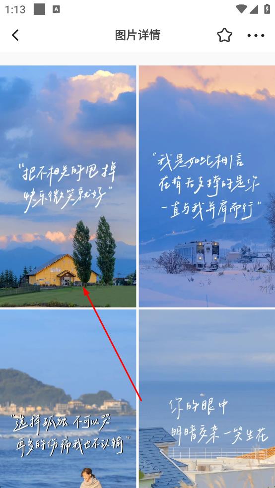 2、在文字壁紙的展示頁面中,瀏覽眾多文字壁紙,找到那張想要更換的壁紙,點(diǎn)擊這張壁紙,進(jìn)入到圖片詳情頁面。