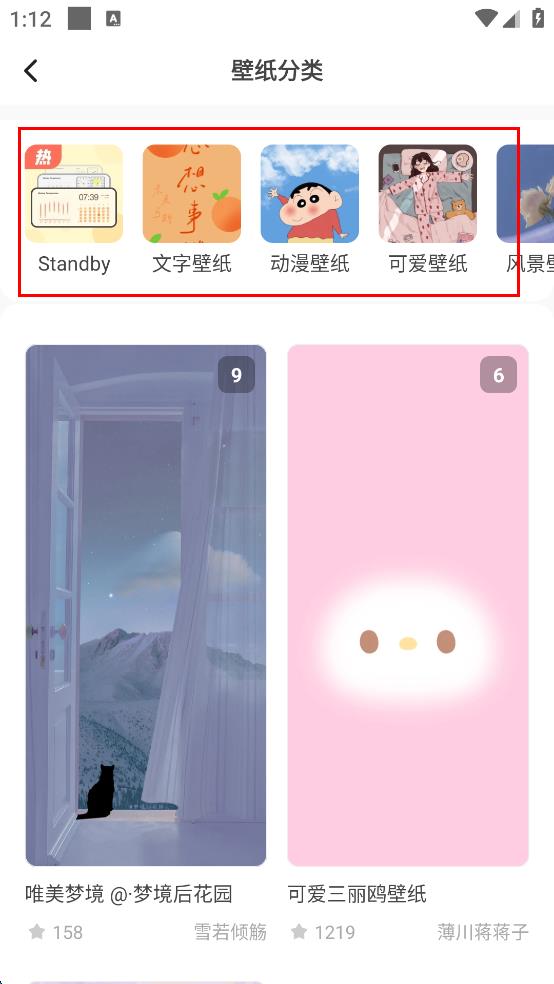 1、打開壁紙軟件,進(jìn)入后在“壁紙分類”頁面中,找到喜歡感興趣的分類,點(diǎn)擊“文字壁紙”分類,進(jìn)入到文字壁紙的展示頁面。