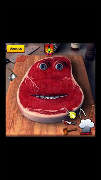 刀、火、鉗子甚至炸彈等等眾多的道具,每一個(gè)道具都為牛排帶來(lái)不同的折磨。