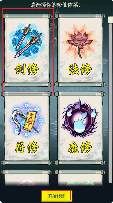 2、可以進(jìn)行你的修仙體系選擇,可以從最開始的劍修來進(jìn)行練習(xí),不同的劍修將會(huì)有著不同的特色性;