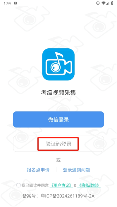 2、如果無法使用微信登錄還可以通過驗證碼登錄,但是要注意勾線下方的《隱私政策》和《用戶協(xié)議》;