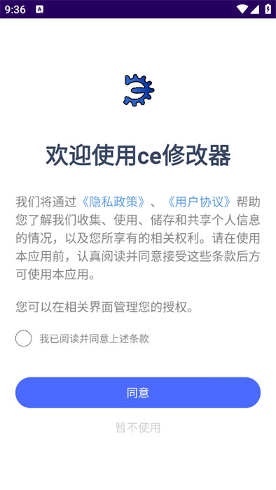 1、打開軟件之后閱讀隱私政策和用戶協(xié)議,點(diǎn)擊同意之后就能進(jìn)入到軟件;