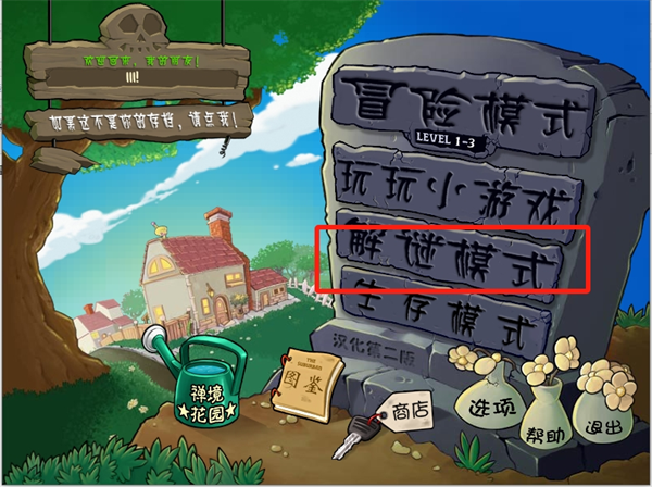 1、進入游戲后可以看到有很多的模式可以選擇,砸罐子模式在解謎模式中找尋;