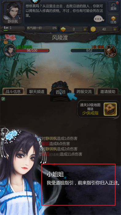 3、此時玩家將會來到江湖之中,可以點擊下方的對話框來進(jìn)行對話的推進(jìn);
