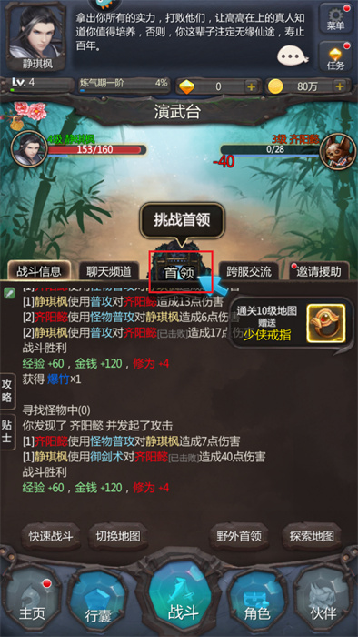 4、還可以點擊屏幕中央的【首領(lǐng)】按鈕,以快速的和這些首領(lǐng)們進(jìn)行戰(zhàn)斗競技;