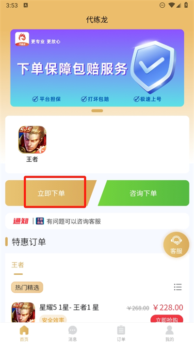 1、進入軟件后可以就可以看到如何進行下單了,如果決定了可以直接選擇立即下單;