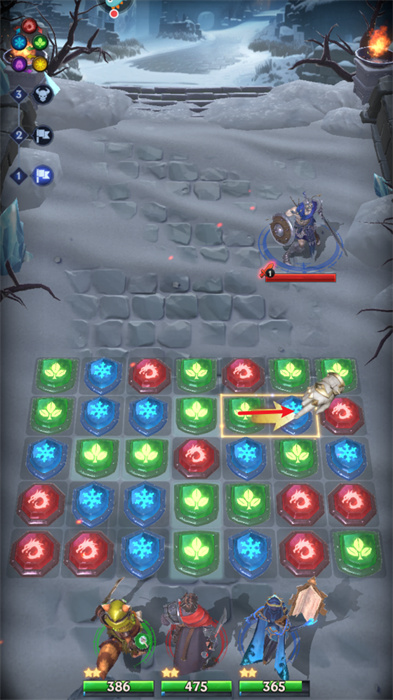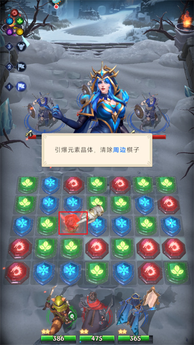 4、開啟城門后,玩家將會正式的開啟戰(zhàn)斗,可以通過點擊元素晶石來進行周邊棋子的清除;