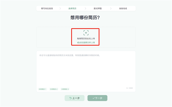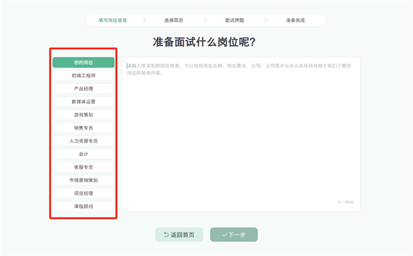 2、第二步需要選擇自己準(zhǔn)備面試的崗位,還可以輸入自己想要找的工作自動(dòng)匹配崗位;