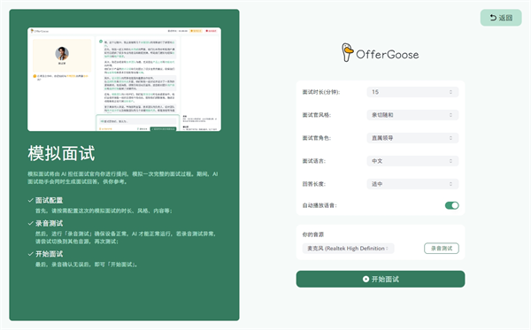 offergoose多面鵝是一款能夠幫助面試者們通過(guò)全方位面試求職的正面回答教學(xué)軟件,在面對(duì)如今的求職面試上利用該軟件能夠更加完美的面對(duì)一些面試時(shí)所出現(xiàn)的一些問(wèn)題,并通過(guò)及時(shí)且完美的回答讓面試官更加了解自己,所以在面對(duì)如今的應(yīng)屆生們都非常喜歡該軟件,能夠幫助大家更好的去了解有關(guān)面試時(shí)該回答的方式,所以大家在使用上可以通過(guò)該軟件也能模擬進(jìn)行更好的面對(duì)面試時(shí)的問(wèn)題。