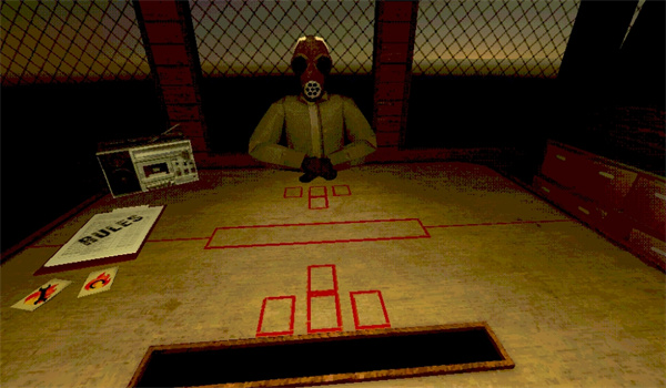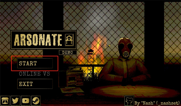 1、來(lái)到一個(gè)恐怖懸疑黑暗的首頁(yè)中,直接點(diǎn)擊【START】開展桌面卡牌游戲,進(jìn)入到與帶著防毒面具人展開桌面對(duì)決的危急時(shí)刻,成功逃離這個(gè)快要被火勢(shì)蔓延的世界中;