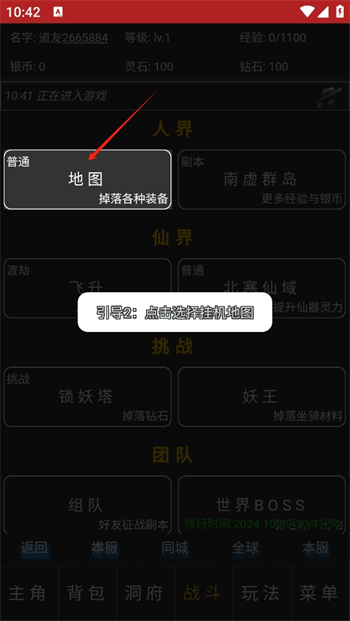 3、然后點(diǎn)擊選擇想要進(jìn)入的地圖戰(zhàn)斗類型,在這里點(diǎn)擊選擇新手進(jìn)入的普通模式中,掛機(jī)就可以游玩獲得掉落的各種裝備;