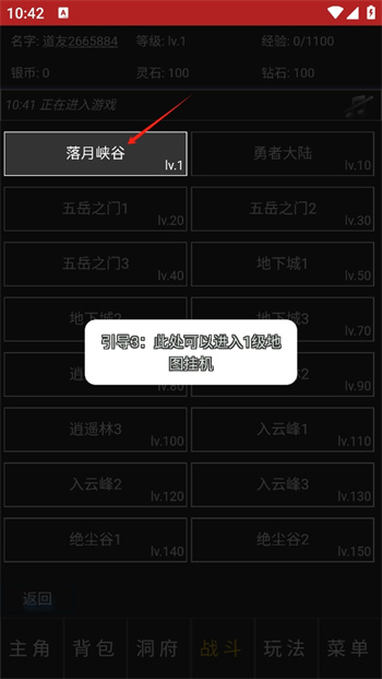 4、選擇等級(jí)1新手所要進(jìn)入的【落月峽谷】挑戰(zhàn)中,體驗(yàn)這個(gè)峽谷中的獨(dú)有戰(zhàn)斗冒險(xiǎn)過程,這里匯聚了海量的不同等級(jí)冒險(xiǎn)地點(diǎn),享受精彩的掛機(jī)修仙戰(zhàn)斗;