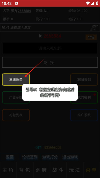 6、來到這個(gè)引導(dǎo)5的步驟之中,點(diǎn)擊【主線任務(wù)】在這里開啟自己的獨(dú)有戰(zhàn)斗任務(wù),開啟自己在這里的修仙玄幻作戰(zhàn)之旅。