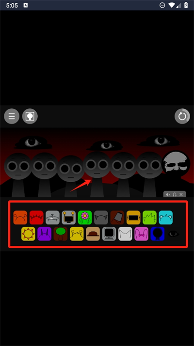 4、每個(gè)畫面的角色裝飾物也將會(huì)變得更加黑暗,感受更加詭異的音樂節(jié)奏的混音效果吧。
