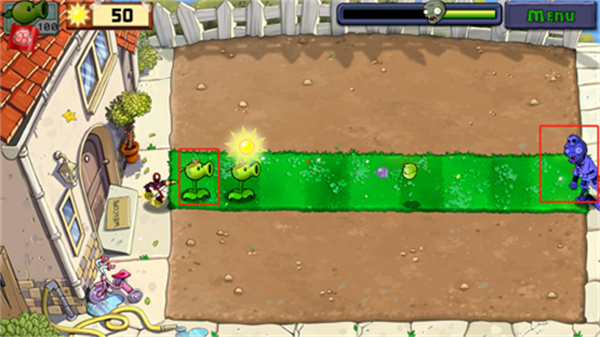 3、順利的進(jìn)入到場(chǎng)景內(nèi)之后,玩家需要在有限的地皮之上進(jìn)行植物的種植,以快速的攻擊死進(jìn)攻的植物;