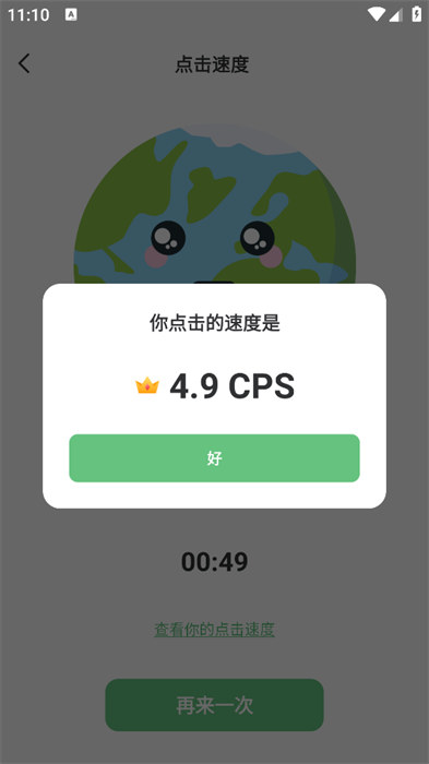 5、完成測試之后能夠查看到自己的點(diǎn)擊速度;