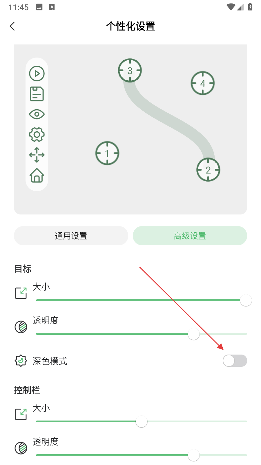 3、在高級設(shè)置頁面中,找到深色模式的開關(guān)按鈕,點(diǎn)擊該開關(guān)開啟深色模式。