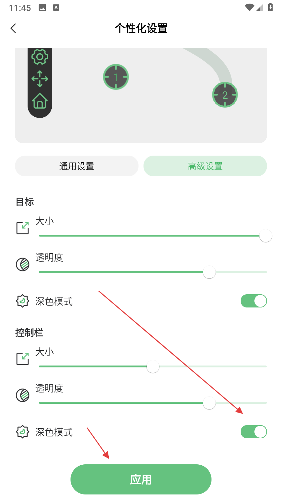 4、完成設(shè)置后,點(diǎn)擊界面底部的應(yīng)用按鈕,使個性化設(shè)置生效。