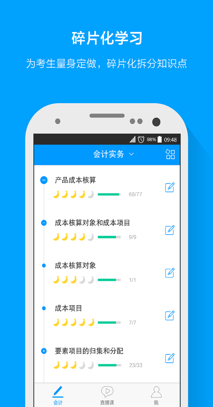 4.碎片化學(xué)習(xí):為考生量身定做,碎片化拆分知識點,不會為厚重的教材而發(fā)愁,各個考點逐一擊破;提煉重點,難點高頻考點,摒棄小分無用知識點。