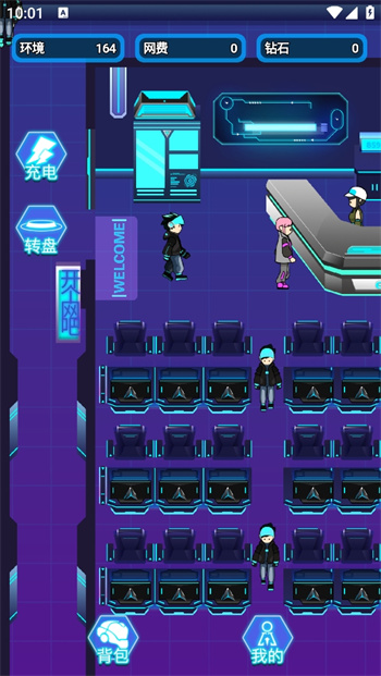 2、隨后就直接進(jìn)入到網(wǎng)吧之中了,海量的顧客前來(lái)這個(gè)網(wǎng)吧里面,他們自動(dòng)上網(wǎng)中為你帶來(lái)豐厚的收益,簡(jiǎn)單的玩法過(guò)程中體驗(yàn)真實(shí)的經(jīng)營(yíng)模擬過(guò)程;