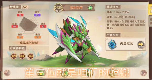 3、第三位是螳螂,位列種族值第二的精靈,是當(dāng)之無愧的六邊形戰(zhàn)士,且形象十分的帥氣;
