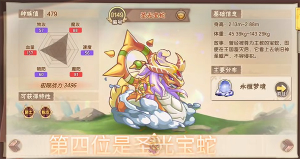 4、第四位是圣光寶蛇,可攻擊可防守,親民度很高的一個精靈;
