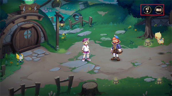 4、也可以點(diǎn)擊屏幕右上角的加速按鈕來(lái)進(jìn)行對(duì)話的加速,或者是點(diǎn)擊【跳過(guò)】按鈕,來(lái)進(jìn)行對(duì)話的跳過(guò);