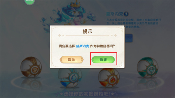 6、點(diǎn)擊對(duì)應(yīng)的小球之后,玩家需要點(diǎn)擊紅色框框內(nèi)的【選擇】按鈕,以進(jìn)行寵物的選定;