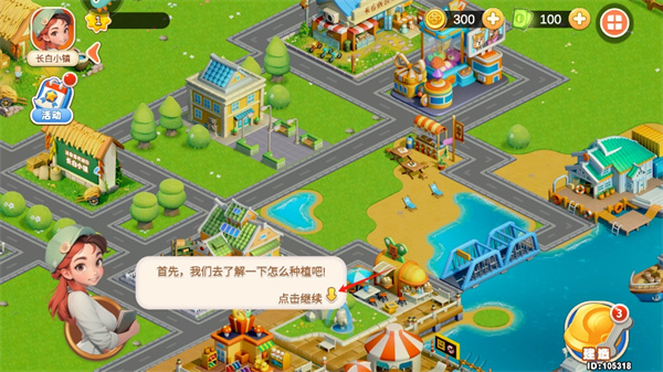 3、想要發(fā)展這個小鎮(zhèn)農(nóng)業(yè)種植必不可少,首先先去要去了解這個小鎮(zhèn)中的種植,繼續(xù)點擊屏幕進入下一步操作中;