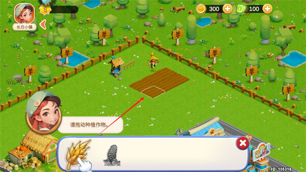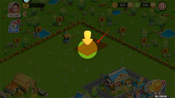 4、在屏幕亮起的指引之下點擊,在這個空白的地方開墾出一片農(nóng)作物田地,在這里種植上自己的農(nóng)作物;