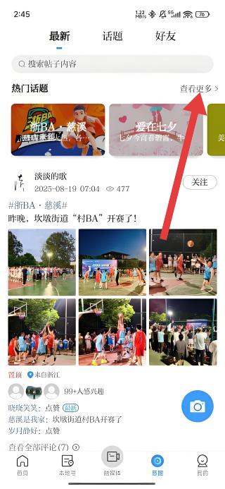 2、在圈子頁(yè)面右上角,點(diǎn)擊查看更多按鈕,跳轉(zhuǎn)至話題列表界面,獲取更多話題分類。