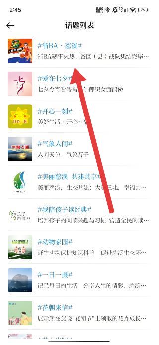 3、進(jìn)入話題列表后,選擇如#浙BA·慈溪#等感興趣的話題,查看該話題下的詳細(xì)內(nèi)容與互動(dòng)信息。