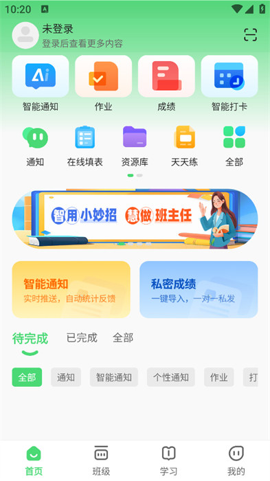 2、在軟件的首頁可以看到各種各樣的功能內(nèi)容和自己作業(yè)的完成情況等;