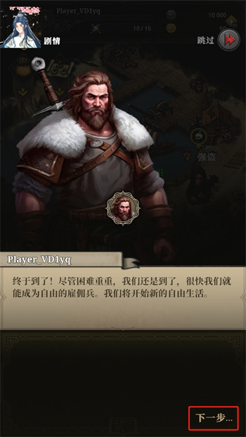 4、然后就會進入到一段前景故事介紹中,點擊右下角的【下一步】了解這個世界背景,帶來更加沉浸式的冒險故事,或者直接點擊【跳過】進入游戲中;