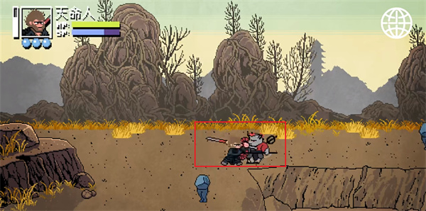 3、還需要和場(chǎng)景內(nèi)的怪物以及妖怪們進(jìn)行戰(zhàn)斗,可以使用定身術(shù),也可以使用自己的金箍棒;