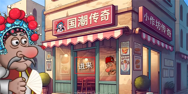 2、此時玩家將會來都你的國潮店鋪外面,需要點擊屏幕之中的【進來】按鈕,以進入到店鋪之中;